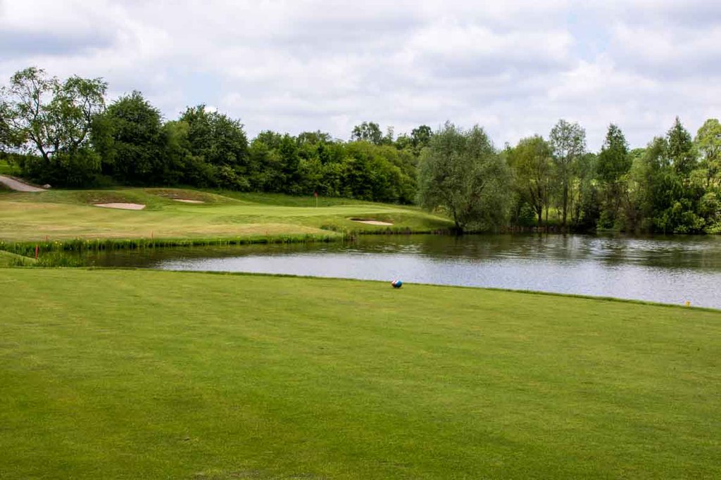 Nun folgen zwei der schönsten Bahnen des gesamten Platzes. Bahn 16 ist ein rund 490 Meter langes Par 5. Der Abschlag liegt leicht erhöht, für Longhitter kommt von hier gerne einmal der große Teich rechts der Bahn ins Spiel. Doch auch zu weit nach links sollte man nicht spielen, denn dort wartet wieder einmal der Wald auf unpräzise gespielte Bälle. Die meisten Golfer entscheiden sich bei dieser Bahn für eine Drei-Schlag-Strategie zum Grün, da dieses als Halbinsel ausgeprägt ist und leicht quer zur Spielrichtung verläuft. Selbst wenn man also das Grün mit dem zweiten Schlag erreichen kann, bleibt die Herausforderung, dass der Ball auf dem Grün liegen bleibt. Weiter geht es rechts um den See mit Bahn 17 – einem wunderschönen, mittellangen Par 3. Je nach Fahnenposition und gewählter Teebox kommt das Wasserhindernis mehr oder weniger ins Spiel. Von den vorderen Abschlägen ist kaum Wasser zu überwinden, von den hinteren Abschlägen hingegen führt fast der gesamte Weg quer über das Wasser. Die Schlussbahn wird derzeit überarbeitet – ab voraussichtlich Herbst 2018 ist dieses lange Par 4 dann wieder komplett bespielbar, dann mit Deutschlands größtem Grün, das wunderbar von sanften Hügeln eingerahmt wird und auch für Zuschauer beste Möglichkeiten bietet. Bis dahin spielt sich die Schlussbahn als temporäres, kurzes Par 3.